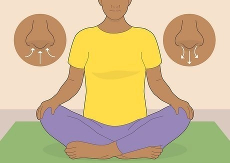 - Sit in a comfortable position with legs crossed.